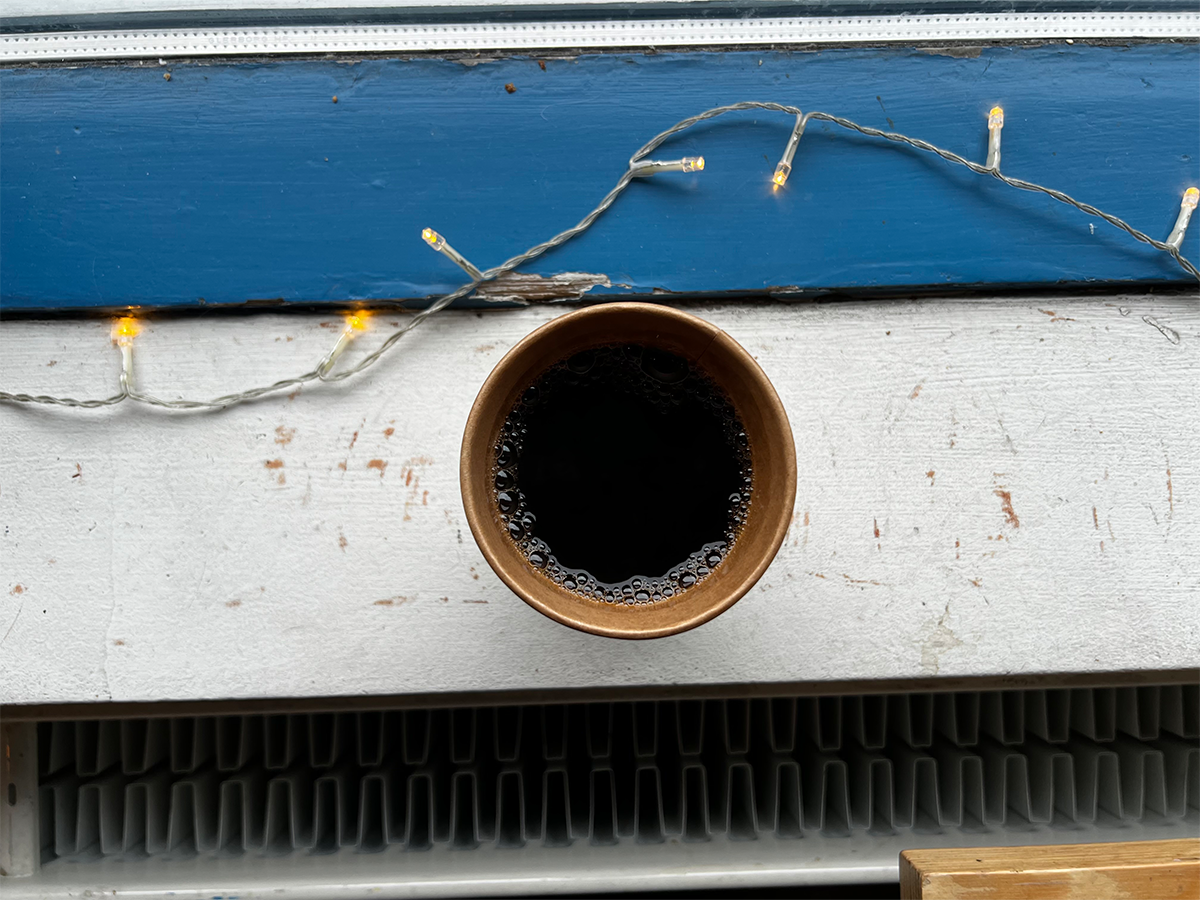 Stuck pixels don’t participate with the rest of the image. Their appearance is miscellaneous; some are fortunate to be clustered on the map, while others are in deep space. These artifacts remind me of confetti: falling round every aspect of the human experience. Sometimes it’s overstimulating, so we drink black coffee.
